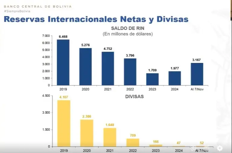 BCB reporta bajas reservas internacionales heredadas por el anterior gobierno, 9 Diciembre de 2025